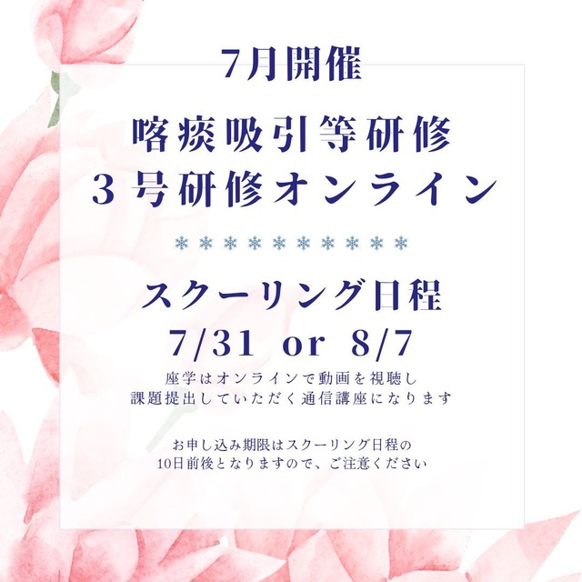 【喀痰吸引 3号研修 オンライン】2026年 4月開催